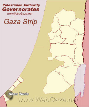 The Khan Yunis Governorate is one of 16 Governorates of the Palestinian National Authority, located in the southern Gaza Strip. Its district capital is Khan Yunis. Its total land area consists of 108 sq. kilometers.